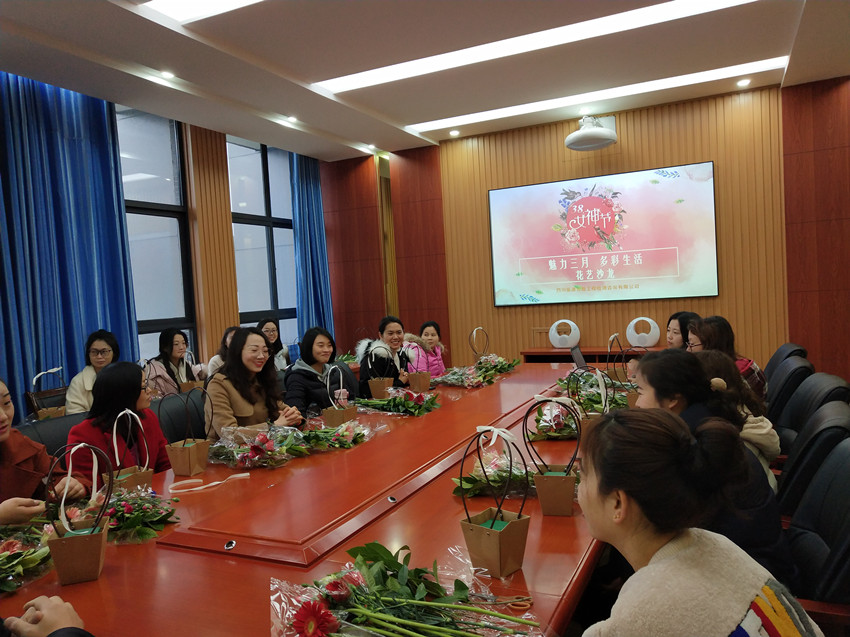 2019年3月8日上午,为庆祝三八国际妇女节,丰富女员工的生活,公司组织全体女员工开展了“魅力三月,多彩生活”主题花艺沙龙活动。