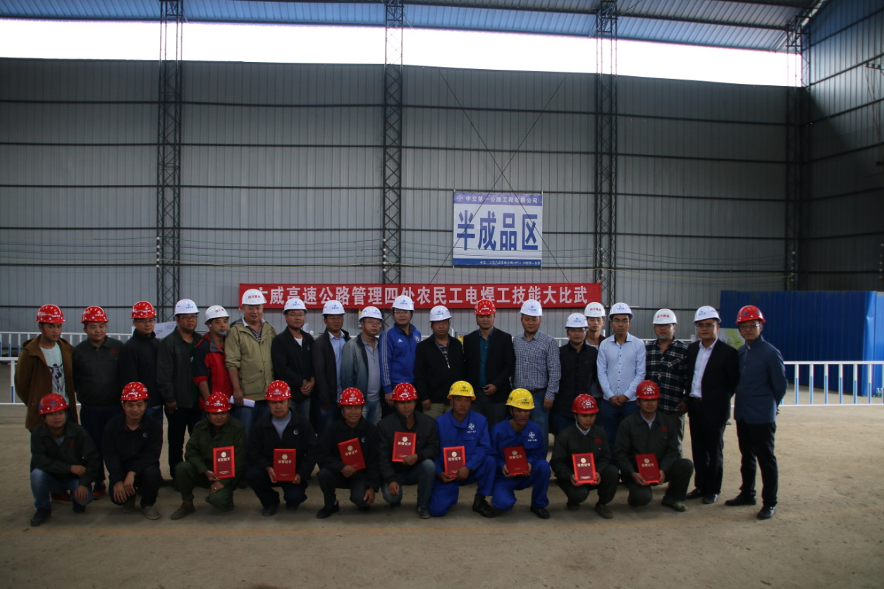 8月30日下午,在六威项目第十八合同段一工区开展为贯彻落实省委、总工会、人社厅对农民工服务的倡导。根据《贵州省交通运输厅系统“贵州农民工匠” 培育行动实施方案》的具体要求,六威项目以培育“贵州农民工匠”为契机,以“展工匠精神,创高速先锋”为主题,在项目建设过程中弘扬工匠精神。六威高速LWZ4中心试验室协助六威四处组织管段内四个标段电焊工举办电焊工技术比赛活动。
