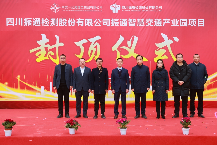 2023年1月16日上午,振通智慧交通产业园主体结构封顶仪式在绵阳隆重举行。绵阳市涪城区区委常委、区人民政府副区长、金家林总部经济试验区党工委副书记、金家林总部试验区管委会主任黄维,中交一公局建工集团有限公司副总经理刘向军,四川振通检测股份有限公司董事长杜义祥等领导嘉宾出席仪式。